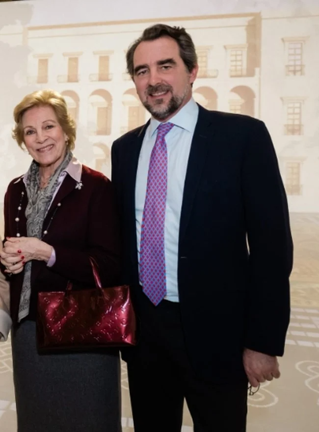 Μητέρα και γιος φωτογραφήθηκαν στους χώρους της έκθεσης, μία εβδομάδα πριν την τέλεση του μνημοσύνου του τέως βασιλιά Κωνσταντίνου, στο Λονδίνο.