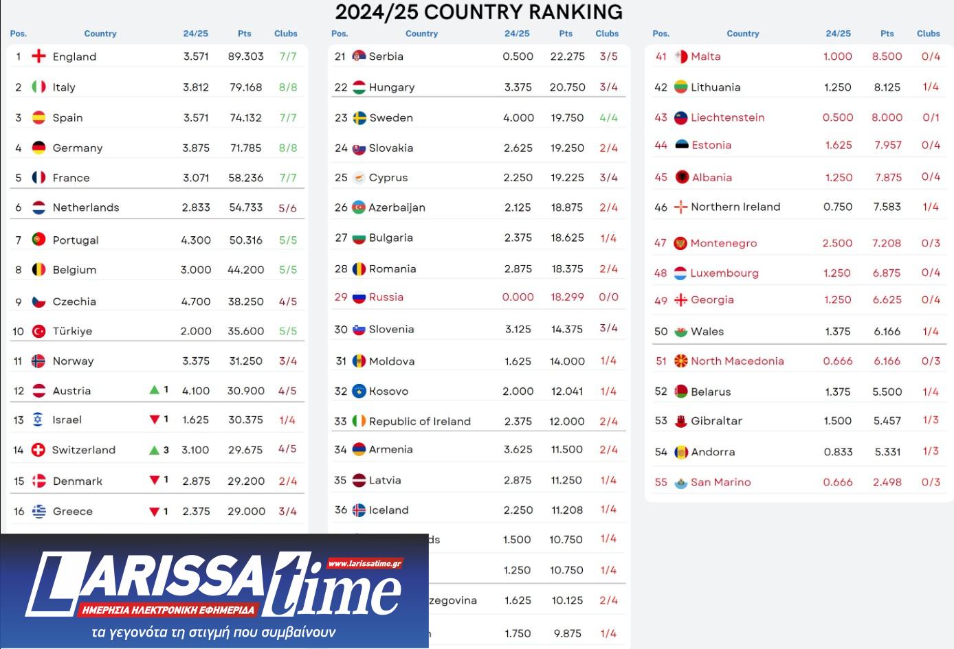 Δύο ημέρες πριν από τους κρίσιμους αγώνες ρεβάνς των ευρωπαϊκών διοργανώσεων, η Ελλάδα υποχώρησε κατά μία θέση στην κατάταξη της UEFA, επηρεάζοντας άμεσα τις ελπίδες των ομάδων της για ευρωπαϊκή διάκριση.
