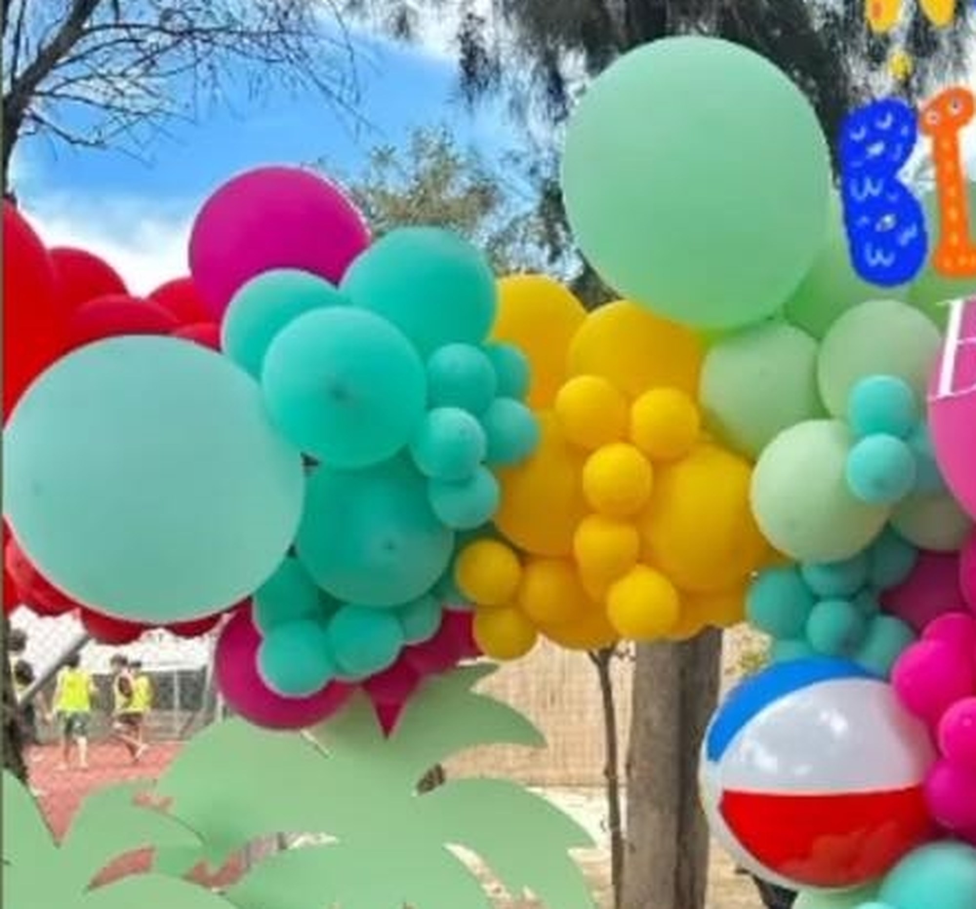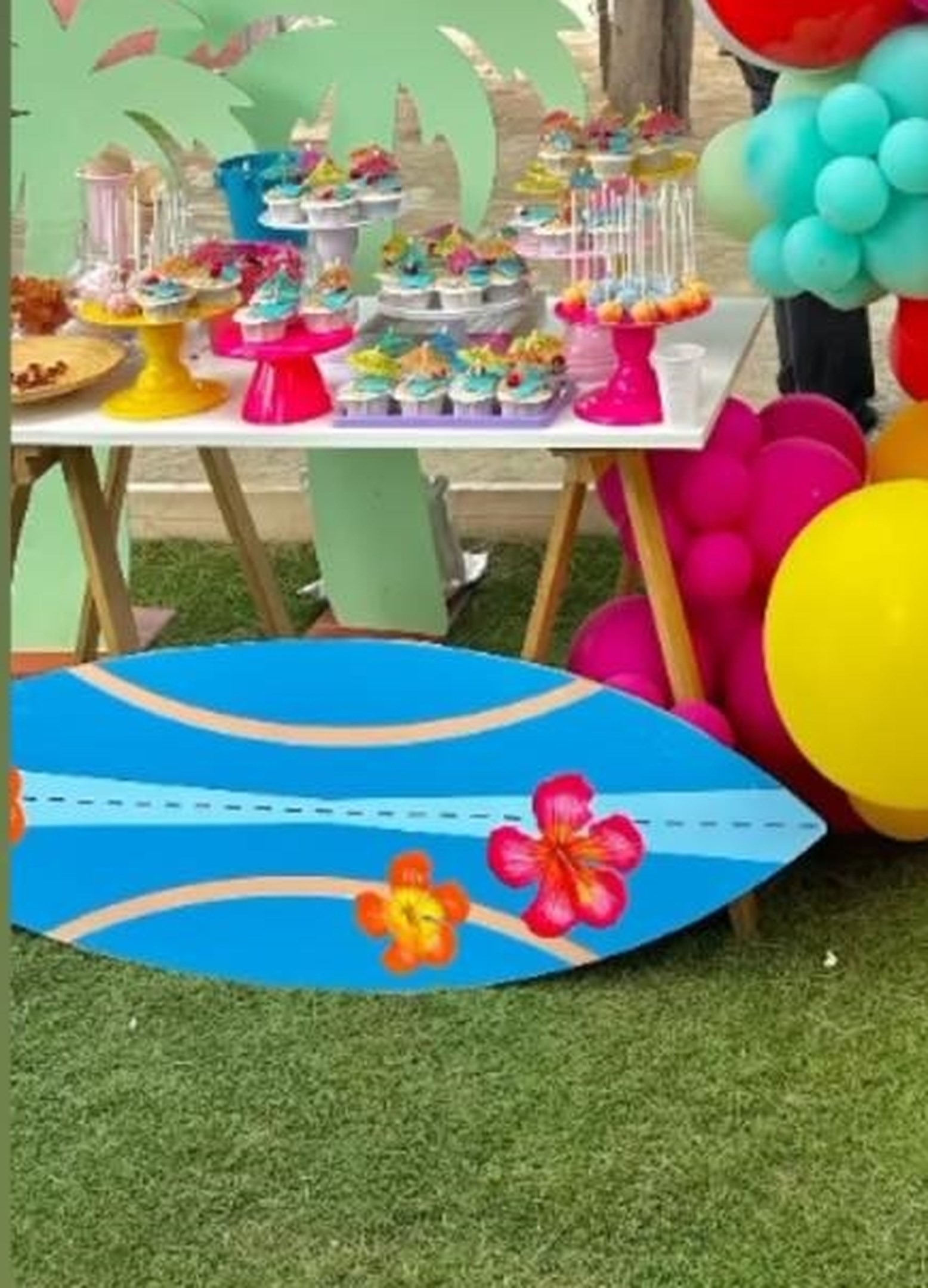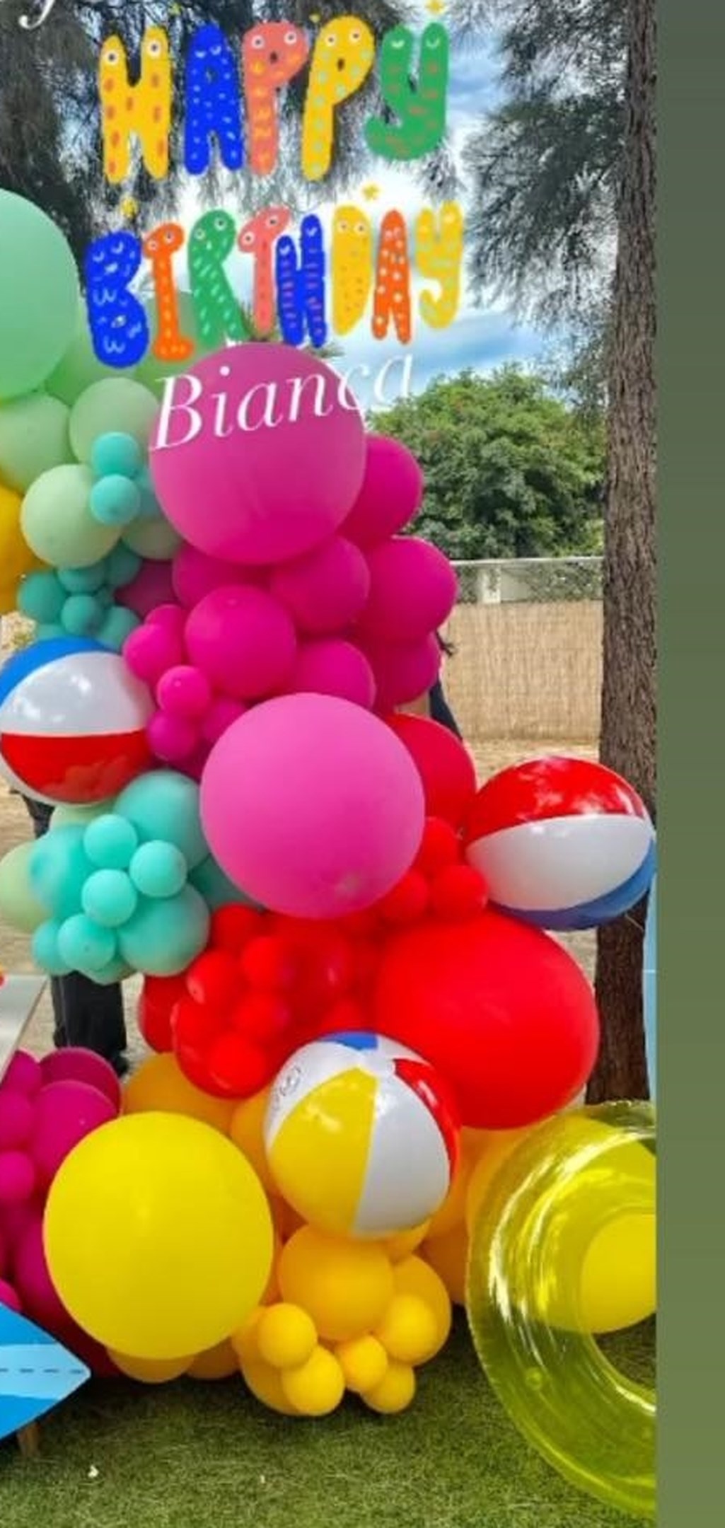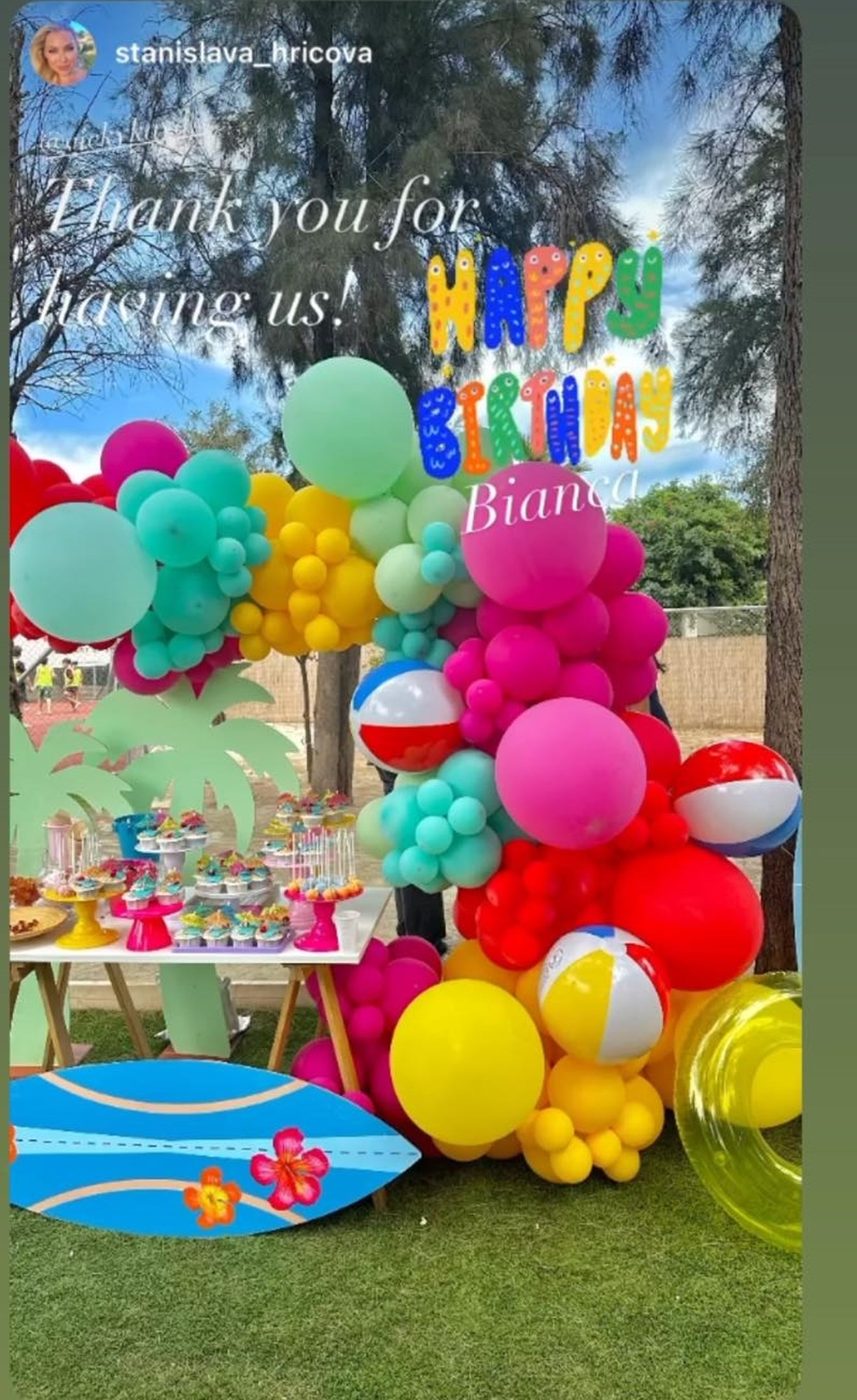 Όπως φαίνεται, το πάρτι της Μπιάνκας πραγματοποιήθηκε σε εξωτερικό χώρο. Η διακόσμηση ήταν καλοκαιρινή, με πληθώρα χρωματιστών μπαλονιών, φουσκωτές μπάλες, φοίνικες και σανίδες θαλάσσης…