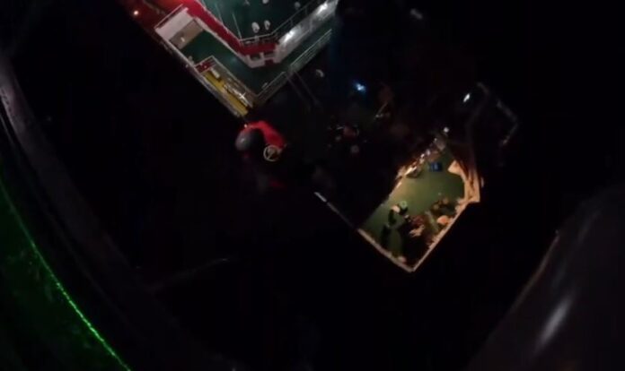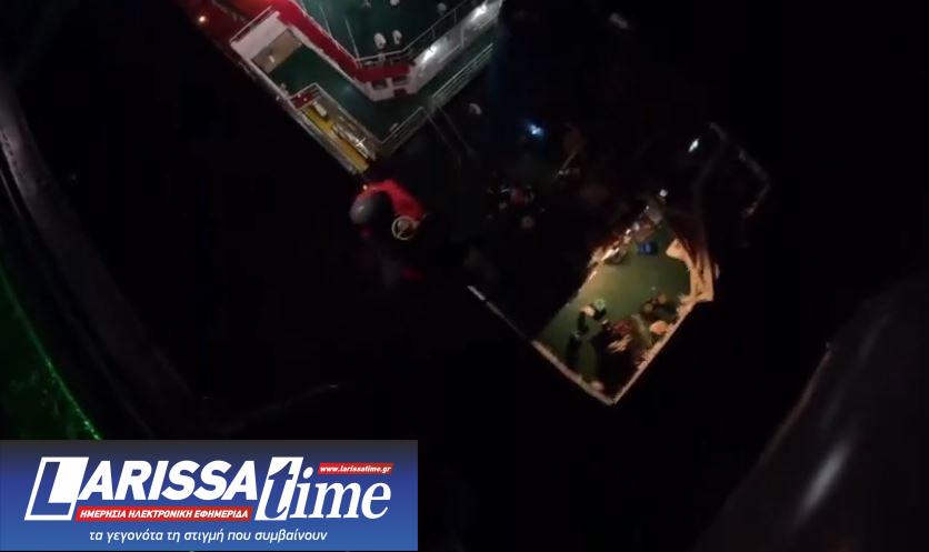 Ελικόπτερο Super Puma της Πολεμικής Αεροπορίας, μετέφερε τραυματία ναυτικό εν μέσω κακοκαιρίας.