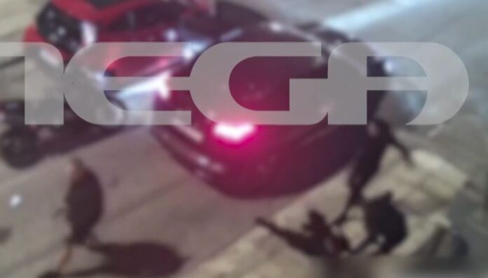 Ο ένας από τους επιβαίνοντες του μεγάλου αυτοκινήτου κατεβαίνει και αρχίζει να γρονθοκοπεί τον 22χρονο, και τότε ξεκινά μία άγρια συμπλοκή μεταξύ τους.