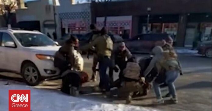 Στο βίντεο διακρίνεται το μετέπειτα θύμα, να προσπαθεί να εμποδίσει τους πράκτορες της ICE, να συλλάβουν έναν άνθρωπο στη μέση του δρόμου.