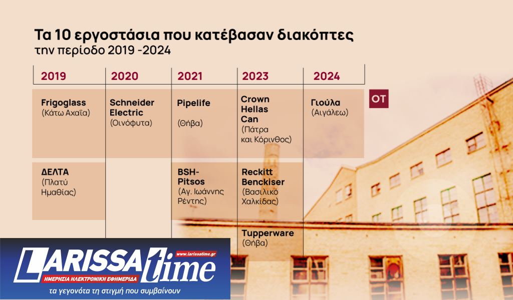 Δέκα εργοστάσια (μαζί με αυτό της Γιούλας με περισσότερους από 120 εργαζόμενους) κατέβασαν διακόπτες όλο αυτό το διάστημα, με το φάντασμα της αποβιομηχάνισης να συνεχίζει να στοιχειώνει τις όποιες προσπάθειες για την ανάκαμψη της χώρας.