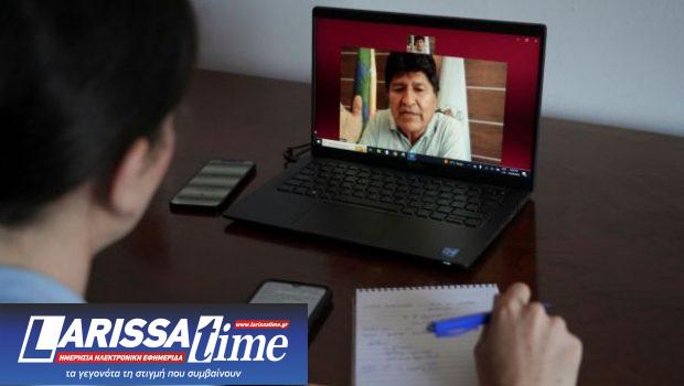 Ο πρώην πρόεδρος της Βολιβίας Εβο Μοράλες ανακοίνωσε χθες Παρασκευή πως αρχίζει απεργία πείνας για ν’ απαιτήσει διάλογο με την κυβέρνηση του προέδρου Λουίς Αρσε, έπειτα από 19 ημέρες διαδηλώσεων και αποκλεισμών δρόμων που οργανώνονται από οπαδούς του σ’ όλη τη χώρα (στη φωτογραφία της Mariana Greif/Reuters, επάνω, ο Μοράλες μιλά στο ίδιο διεθνές ειδησεογραφικό πρακτορείο μέσω διαδικτυακής βιντεοσύνδεσης από μια πόλη της κεντρικής Βολιβίας).