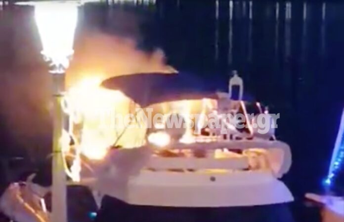 Σύμφωνα με όσα καταγράφει το TheNewspaper.gr το σκάφος πήρε φωτιά από τα φαναράκια που έπεσαν πάνω του και γρήγορα το πάνω μέρος του τυλίχθηκε στις φλόγες.