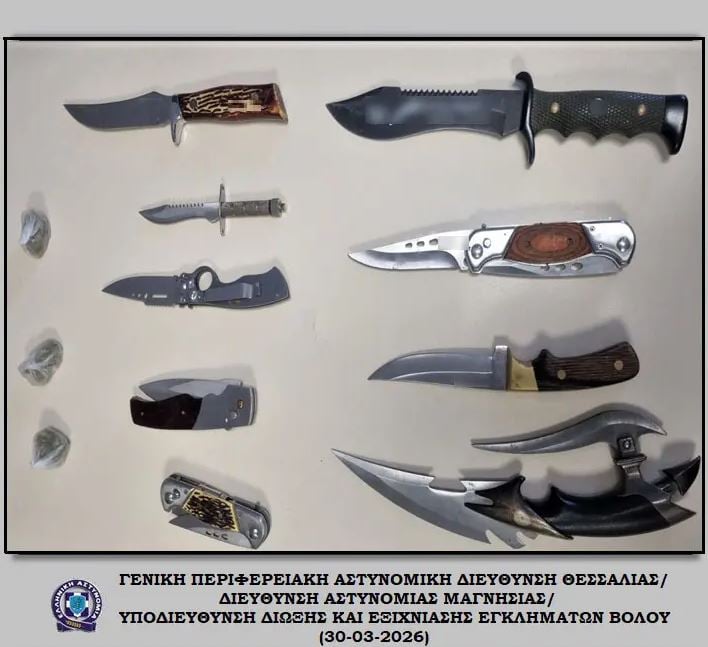Στη σύλληψη ενός 27χρονου, ο οποίος πυροβόλησε με αεροβόλο όπλο έναν συνομήλικό του τραυματίζοντάς τον στο μάτι, προχώρησαν οι αστυνομικές αρχές στον Βόλο. Μάλιστα, σε έρευνα που έγινε στο σπίτι του συλληφθέντα εντοπίστηκαν εννέα μαχαίρια.