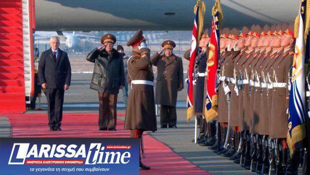Οι φωτογραφίες που έδωσε στη δημοσιότητα το υπουργείο Άμυνας έδειχναν τον Μπελούσοφ να περπατά μαζί με τον υπουργό Άμυνας της Βόρειας Κορέας σε ένα κόκκινο χαλί στο αεροδρόμιο της Πιονγκγιάνγκ.