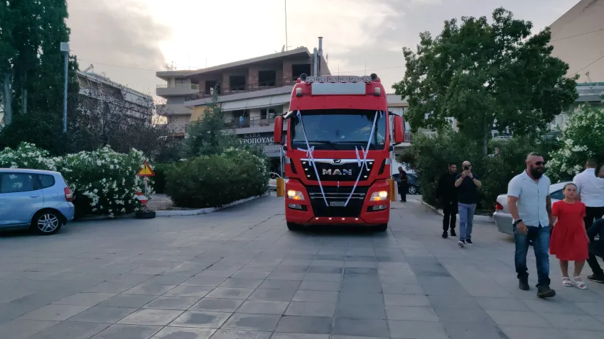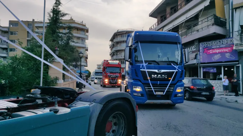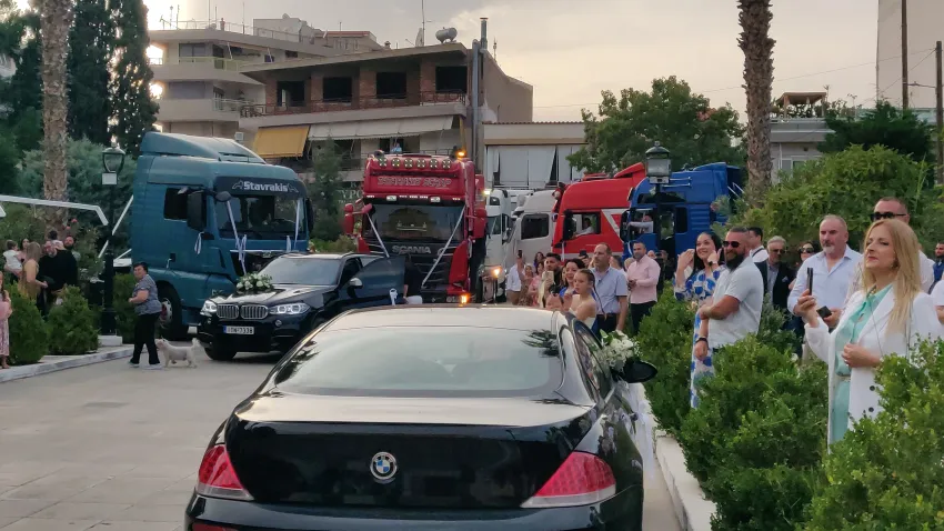 Μια ξεχωριστή και ασυνήθιστη εικόνα αντίκρισαν το Σάββατο 24 Μαΐου οι κάτοικοι της Κορίνθου, καθώς δεκάδες φορτηγά, με τις κόρνες τους να ηχούν δυνατά, σχημάτισαν μια μοναδική πομπή γάμου που δεν είχε προηγούμενο στην περιοχή.