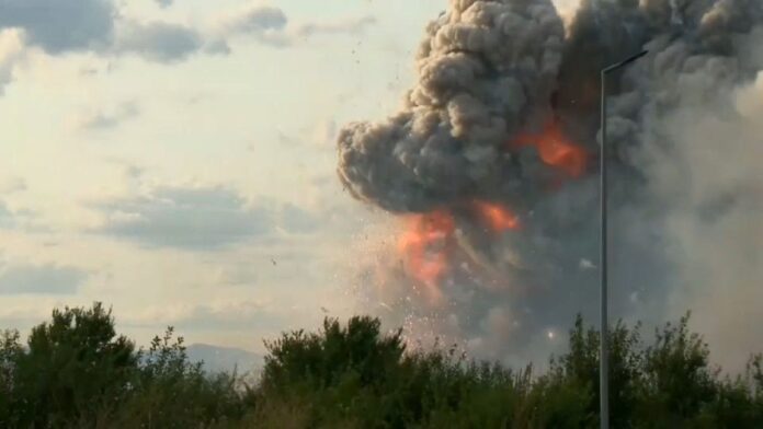 Αυτόπτες μάρτυρες είπαν ότι ακούστηκαν πολλές εκρήξεις και ότι ένα μεγάλο σύννεφο καπνού σκέπασε τα πάντα.