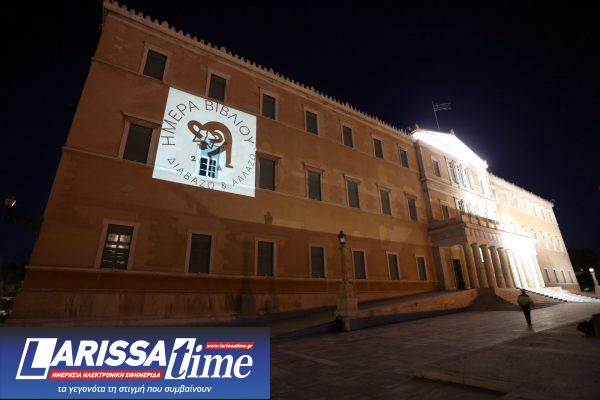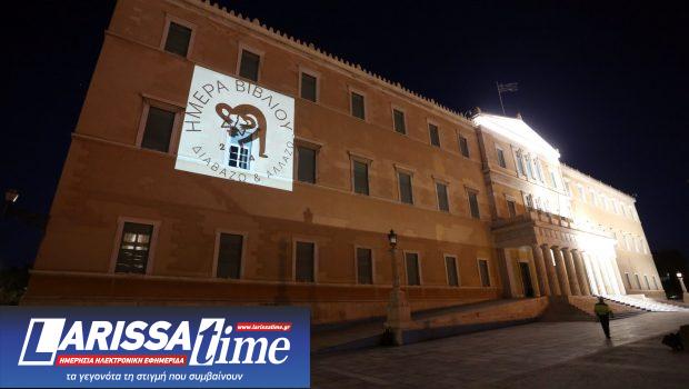 Με το λογότυπο της δράσης για τη φετινή Παγκόσμια Ημέρα Βιβλίου, που δίνει το μήνυμα: «Διαβάζω και Αλλάζω», φωταγωγήθηκε το βράδυ του Σαββάτου (27/4) το Μέγαρο της Βουλής, στην πλατεία Συντάγματος.