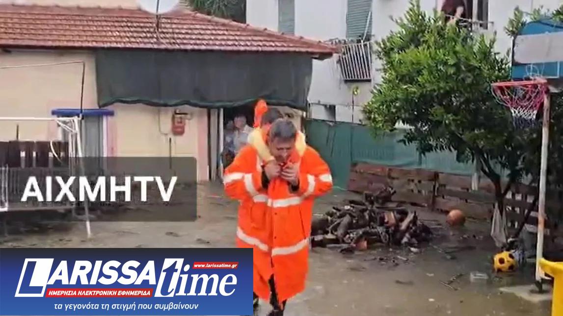 Σε μία από τις περιπτώσεις όπου οι πυροσβέστες κατάφεραν να φτάσουν, απεγκλώβισαν ένα παιδί, με έναν από αυτούς να το παίρνει στους ώμους του για να το μεταφέρει σε ασφαλές σημείο.