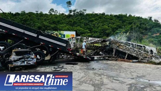 Ο αριθμός των νεκρών από τη σύγκρουση μεταξύ ενός λεωφορείου και ενός φορτηγού στη Βραζιλία, στον αυτοκινητόδρομο BR-116 στο Μίνας Ζεράις τις πρώτες πρωινές ώρες του Σαββάτου 21 Δεκεμβρίου έφτασε τους 38, σύμφωνα με την Πυροσβεστική Υπηρεσία. Το δυστύχημα συνέβη γύρω στις 3 τα ξημερώματα κοντά στην πόλη Τεόφιλο Οτόνι, σύμφωνα με το ειδησεογραφικό πρακτορείο Agencia Brazil.