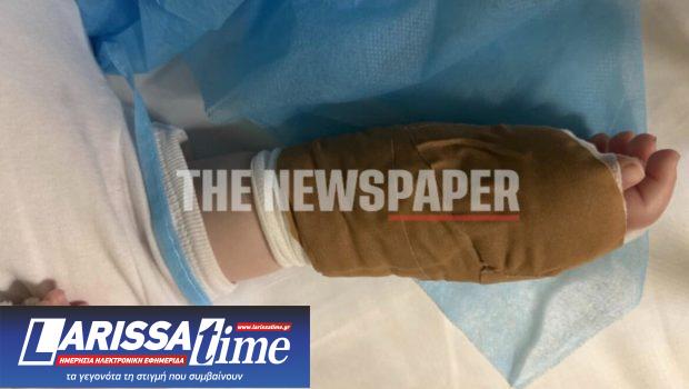 Το βρέφος νοσηλευόταν στο «Αχιλλοπούλειο» όταν από λάθος στη χρήση του ορού παρουσίασε πρήξιμο στο χέρι, με την κατάσταση να επιδεινώνεται οδηγώντας στη νέκρωση τμήματος του δέρματος. Η χειρουργική επέμβαση κρίθηκε αναγκαία και το παιδί μεταφέρθηκε στην Αθήνα.