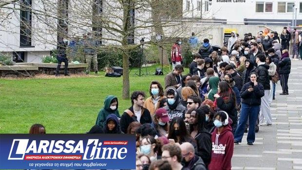 Χθες οι εικόνες που εκτυλίχθηκαν στο Πανεπιστήμιο του Κεντ θύμισαν έντονα την περίοδο της πανδημίας. Φοιτητές με μάσκες σχημάτισαν ουρές προκειμένου να λάβουν προληπτική αγωγή.