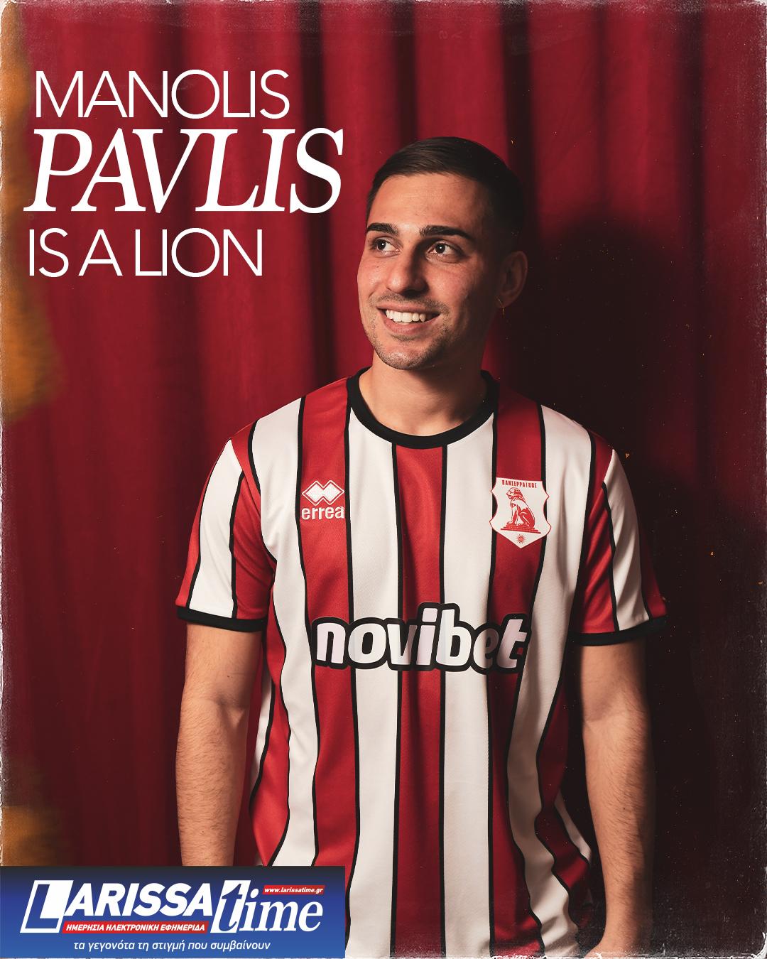Η ΠΑΕ Πανσερραϊκός ανακοινώνει την έναρξη της συνεργασίας της με τον ποδοσφαιριστή Μανώλη Παυλή, ο οποίος υπέγραψε συμβόλαιο συνεργασίας με την ομάδα μας και θα φοράει τη φανέλα με το λιοντάρι στο στήθος.