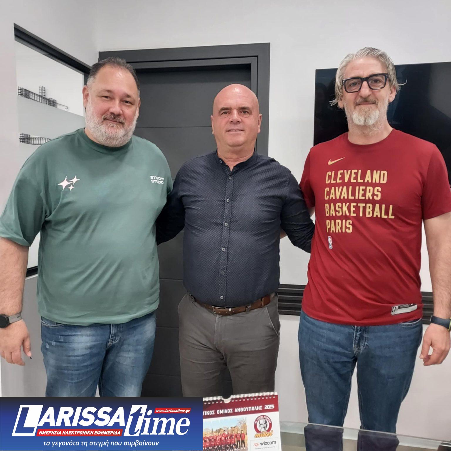 *Στη φωτογραφία ο νέος κόουτς με τον πρόεδρο Χρήστο Πρίφτη και τον Γενικό Αρχηγό Μανώλη Κωστόπουλο».