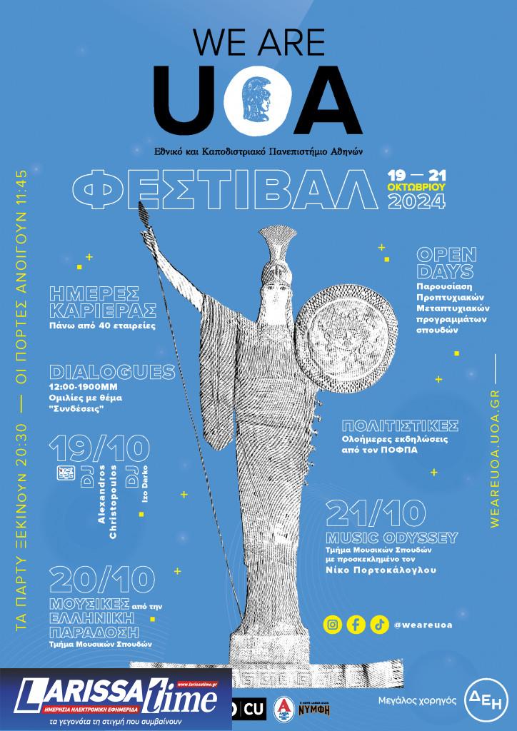 Το 1ο Φεστιβάλ “We Are UoA” του Εθνικού και Καποδιστριακού Πανεπιστημίου Αθηνών (ΕΚΠΑ) είναι γεγονός και σε λίγες μέρες (19-21/10/2024) ανοίγει τις πύλες του στους χώρους του ιστορικού Kεντρικού Kτιρίου, στα Προπύλαια (Πανεπιστημίου 30).