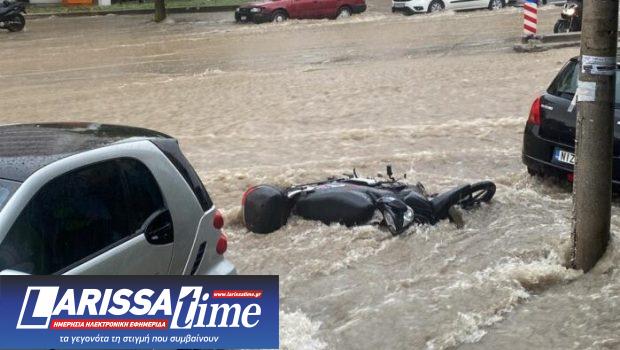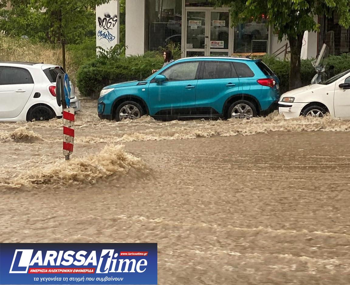 Μέσα σε λίγα λεπτά δρόμοι μετατράπηκαν σε ποτάμια, ενώ λόγω του όγκου του νερού που έπεσε παρατηρούνται προβλήματα στην κυκλοφορία των οχημάτων στην Περιφερειακή Οδό αλλά και σε κεντρικούς οδικούς άξονες της πόλης.