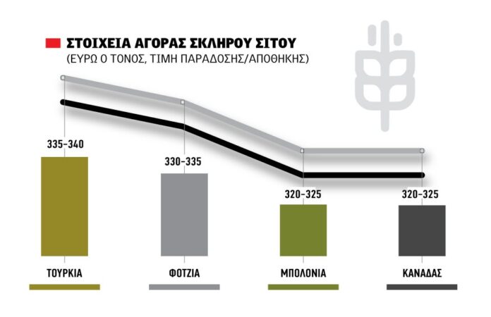 Στην εσωτερική της αγορά η Τουρκία κρατάει πάντως τις τιμές σε υψηλά επίπεδα, αν και πτωτική τάση. Συγκεκριμένα το ημερήσιο Δελτίο της 25ης Μαρτίου καταγράφει πράξεις 8.500 τόνων σκληρού σίτου σε επίπεδα 320 δολαρίων ο αμερικανικός τόνος, ή αλλιώς στα 340 ευρώ ανά μετρικό τόνο. Τα επίπεδα αυτά είναι μεν υψηλά, ωστόσο θα πρέπει να υπολογίζει κανείς πως οι εγχώριες τιμές έχουν χάσει σχεδόν 30 ευρώ ο τόνος μέσα σε τρεις εβδομάδες. Το μαχαίρι κοινώς λίγο – λίγο συνεχίζεται. Ενδεικτικά, πριν μια μόλις βδομάδα οι τούρκικες τιμές έπαιζαν στα 330 δολάρια ο αμερικανικός τόνος ή αλλιώς στα 347 ευρώ ο τόνος. Δηλαδή μέσα σε 5 εργάσιμες, χάθηκαν άλλα 5 ευρώ ο τόνος.
