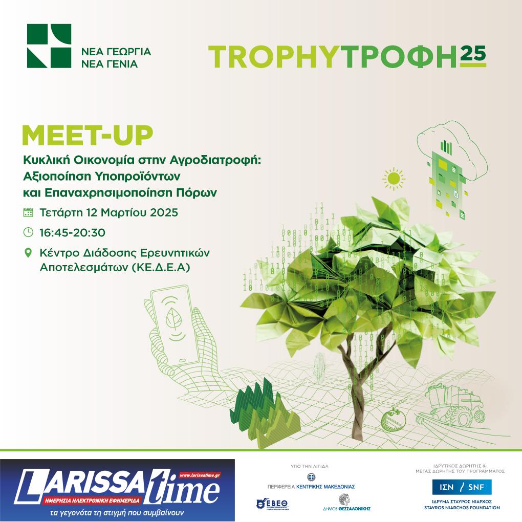 Το πρώτο Trophy – Τροφή Meet-up, με θέμα: «Κυκλική Οικονομία στην Αγροδιατροφή: Αξιοποίηση Υποπροϊόντων και Επαναχρησιμοποίηση Πόρων», θα πραγματοποιηθεί την Τετάρτη 12 Μαρτίου 2025 στο Κέντρο Διάδοσης Ερευνητικών Αποτελεσμάτων (ΚΕ.Δ.Ε.Α.).
