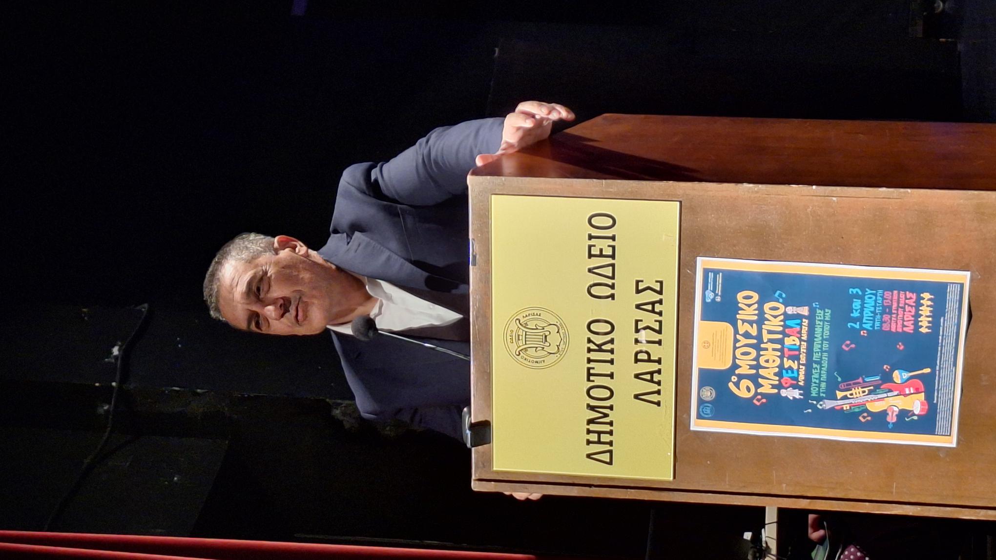 Στο 6ο Μουσικό Μαθητικό Φεστιβάλ Σχολείων, με τίτλο: «Μουσικές περιπλανήσεις στη παράδοση του τόπου μας», το οποίο ξεκίνησε το πρωί στο Δημοτικό Ωδείο Λάρισας, και θα ολοκληρωθεί αύριο, παραβρέθηκε ο Περιφερειάρχης Θεσσαλίας κ. Δημήτρης Κουρέτας.