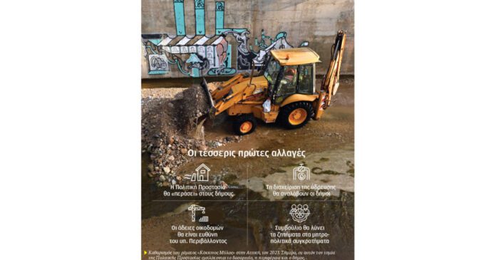 Τέλος στις μεγάλες δυσλειτουργίες που προκαλούν οι «γκρίζες ζώνες» των αρμοδιοτήτων μεταξύ δήμων, περιφερειών και κεντρικής διοίκησης επιχειρεί να βάλει το υπουργείο Εσωτερικών, ξεκινώντας από τέσσερις βασικούς τομείς. Με βάση τις προωθούμενες ρυθμίσεις ο καθαρισμός των φρεατίων και των ρεμάτων, ένας τομέας κρίσιμος για την πολιτική προστασία, θα ανατεθεί στους δήμους, ενώ η έκδοση οικοδομικών αδειών θα μεταφερθεί στο υπουργείο Περιβάλλοντος. Παράλληλα, δημοτικές επιχειρήσεις θα διαχειρίζονται την ύδρευση αναφορικά με το πόσιμο νερό και την αποχέτευση, ενώ την άρδευση θα εποπτεύει το ΥΠΕΝ. Τέλος, προβλέπεται η δημιουργία ενός νέου συμβουλίου που θα λαμβάνει τις αποφάσεις για τη διαχείριση μητροπολιτικών συγκροτημάτων.