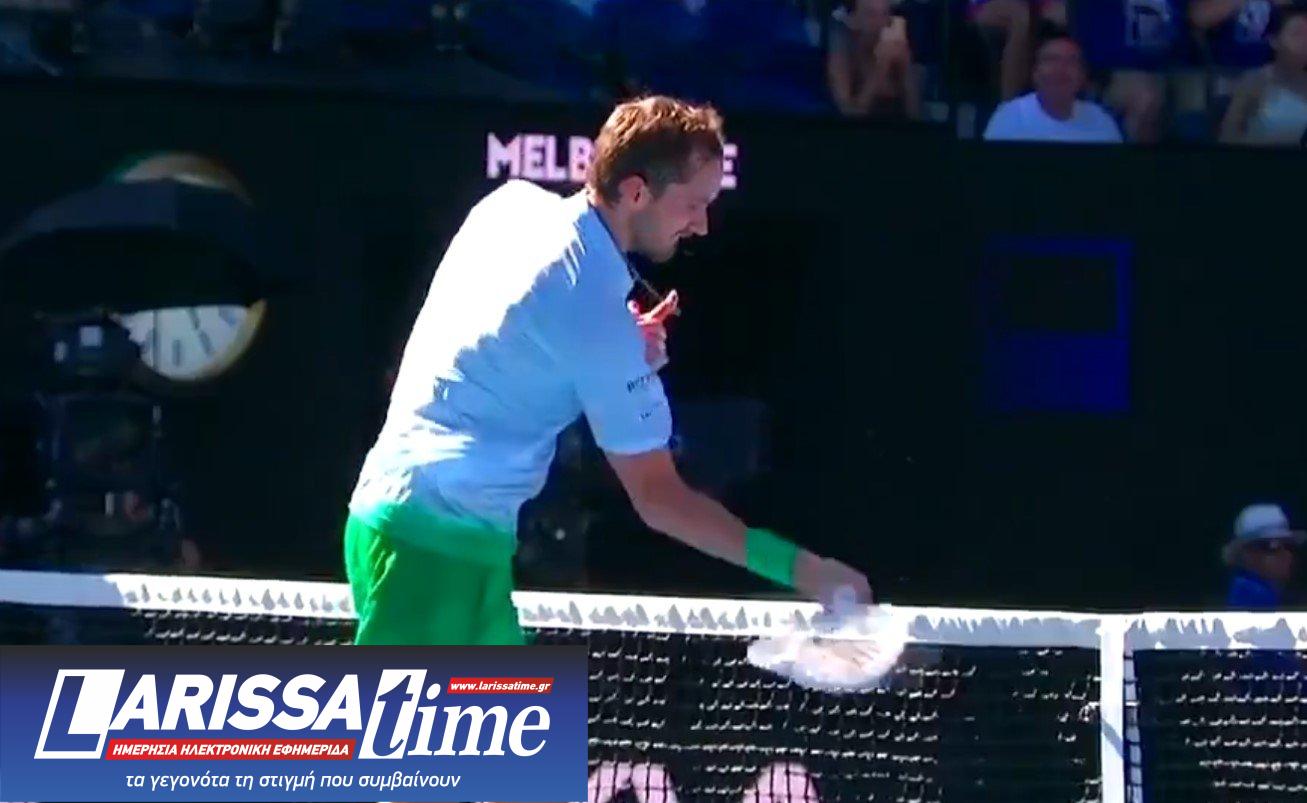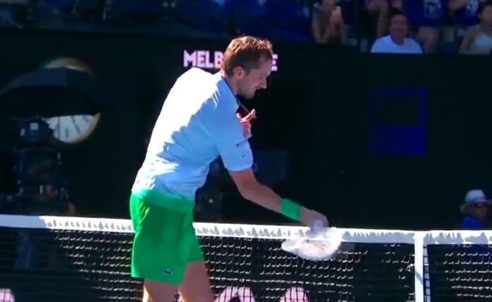Την ψυχραιμία του έχασε ο Ντανίλ Μεντβέντεφ, που χρησιμοποίησε τη ρακέτα του για να σπάσει μια κάμερα προσαρτημένη στο δίχτυ κατά τη διάρκεια μιας δύσκολης νίκης στον πρώτο γύρο του φετινού Australian Open.