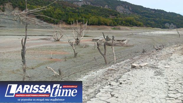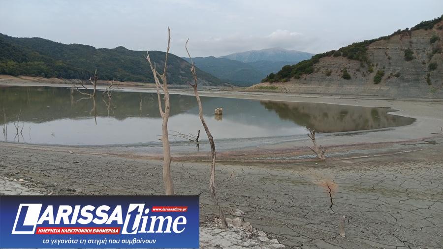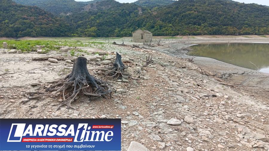 Ερείπια πέτρινων σπιτιών και του σχολείου βουτηγμένα στη λάσπη. Κορμοί και ρίζες δένδρων που άντεξαν στο χρόνο και το νερό, μοιάζουν με απολιθώματα. Ο βυθός σε πολλά σημεία, έχει πλέον τελείως στεγνώσει.