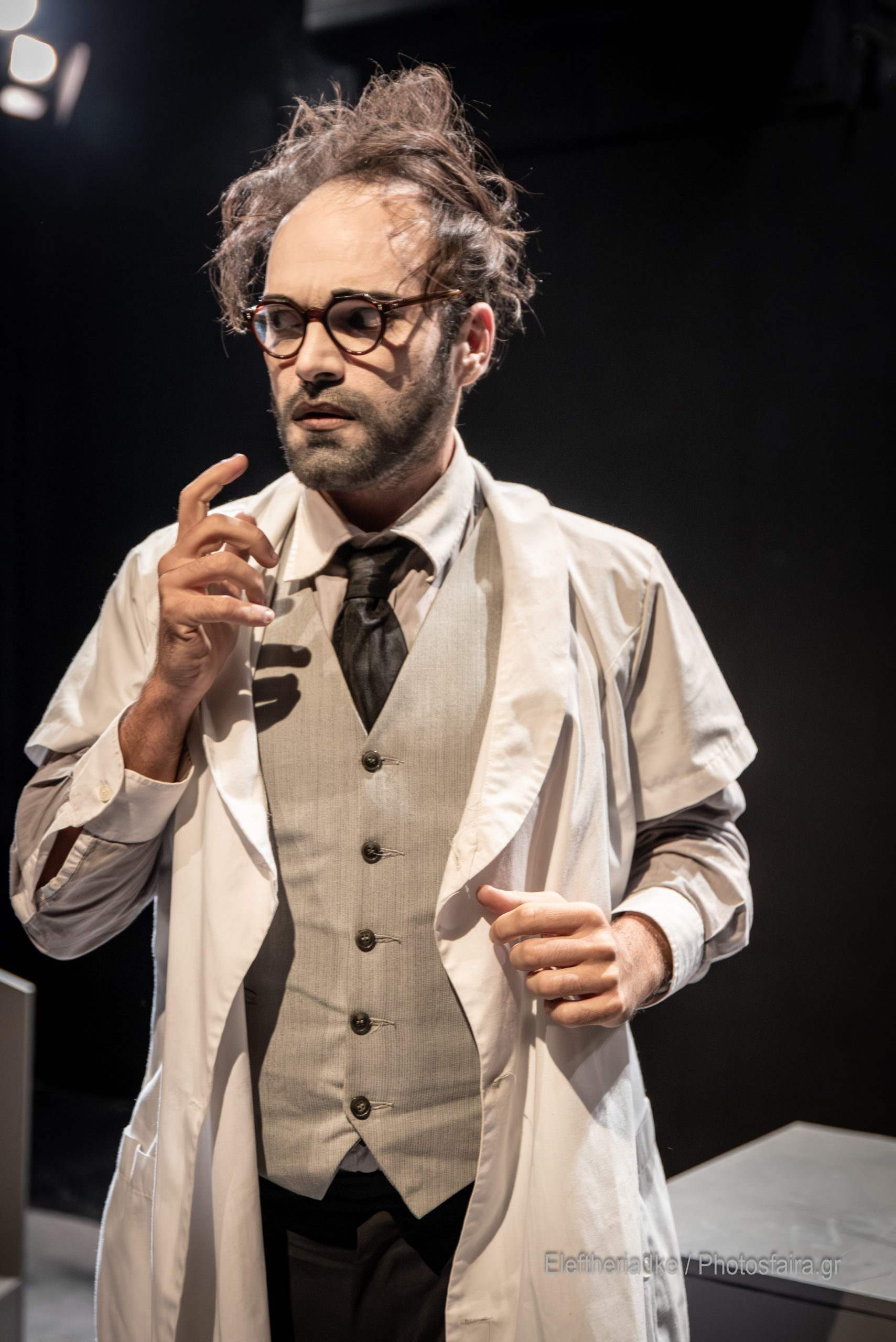 Η σκηνική γλώσσα της παράστασης είναι ιδιαίτερα πρωτότυπη, καθώς συνδυάζει τις φόρμες του βωβού εξπρεσιονιστικού κινηματογράφου με την παντομίμα και τη slapstick κωμωδία.