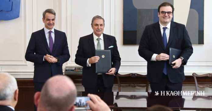 Η τελετή υπογραφής της σύμβασης για τη δημιουργία 22 Πρότυπων Σχολείων (11 Γυμνάσια και 11 Λύκεια) μεταξύ του υπουργείου Παιδείας και του Ιδρύματος Ωνάση πραγματοποιήθηκε στο Μέγαρο Μαξίμου σήμερα, Δευτέρα, το πρωί, με την παρουσία του πρωθυπουργού Κυριάκου Μητσοτάκη.