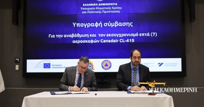 Η σύμβαση για την αναβάθμιση επτά Canadair CL-415 υπεγράφη σήμερα παρουσία του υπουργού Κλιματικής Κρίσης και Πολιτικής Προστασίας Γιάννη Κεφαλογιάννη σε ειδική εκδήλωση που πραγματοποιήθηκε στο υπουργείο.