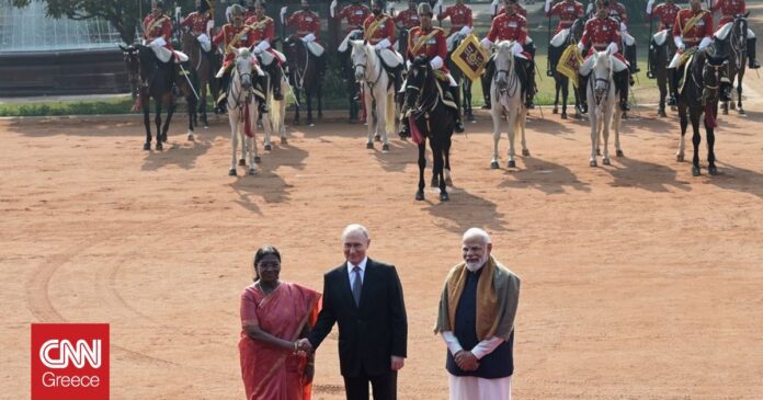 Με όλες τις τιμές έγινε η υποδοχή του Ρώσου προέδρου Βλαντιμίρ Πούτιν στην Ινδία από τον πρωθυπουργό Ναρέντρα Μόντι.