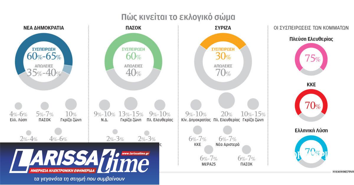 Τέλος, αξίζει να σημειωθεί πως τις υψηλότερες συσπειρώσεις, πάνω από 70%, έχουν το ΚΚΕ, που παραδοσιακά δεν χάνει ψηφοφόρους, η Πλεύση Ελευθερίας και η Ελληνική Λύση που έχουν ανεβάσει τα ποσοστά τους από το 2023, κρατώντας ανέπαφη την εκλογική τους βάση. Εν κατακλείδι, οι μετακινήσεις των ψηφοφόρων δείχνουν πως τα ποσοστά των κομμάτων μπορεί να μεταβληθούν από αρκετά έως πολύ στις εθνικές εκλογές και όλες οι μάχες, πλην της πρώτης θέσης που είναι «κλειδωμένη» από τη Νέα Δημοκρατία, είναι ανοικτές.