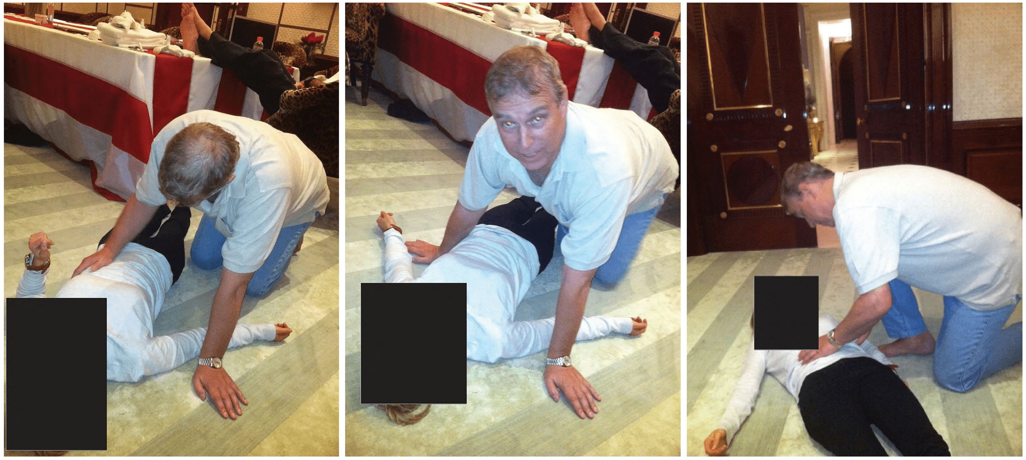 Ο πρίγκιπας Άντριου της Βρετανίας εμφανίζεται γονατιστός πάνω από μια γυναίκα σε συνδυασμό εικόνων που δόθηκαν στη δημοσιότητα από το Υπουργείο Δικαιοσύνης των ΗΠΑ στην Ουάσινγκτον, D.C., στις 30 Ιανουαρίου 2026, στο πλαίσιο νέας δέσμης εγγράφων από τις έρευνές του για τον εκλιπόντα χρηματιστή και καταδικασμένο για σεξουαλικά εγκλήματα Τζέφρι Έπσταϊν.