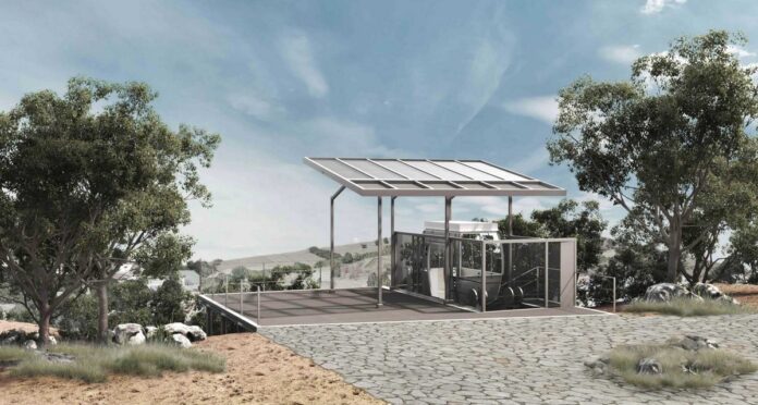 Ο σταθμός αφετηρίας του ανελκυστήρα προβλέπεται να είναι στο επίπεδο +878,20, στάθμη ενδιάμεση από την Πλατεία Ευρώπης και την είσοδο στο Τουριστικό Περίπτερο Ξενία. Για την πρόσβαση στη στάθμη αφετηρίας οι επισκέπτες μπορούν να φτάσουν πεζοί, από το νέο διαμορφωμένο μονοπάτι που ξεκινάει από την Πλατεία και οι επισκέπτες ΑμεΑ, με τον κατακόρυφο ανελκυστήρα που ξεκινάει από την Πλατεία και σταματά στα δύο επίπεδα ενδιαφέροντος: Επίπεδο αφετηρίας ανελκυστήρα και χώρων υγιεινής και επίπεδο τουριστικού περιπτέρου. Το κτήριο αφετηρίας είναι υπόγειο, ώστε να μην κυριαρχεί στη συνολική ανάπλαση της Πλατείας. Το κτήριο άφιξης του επικλινούς ανελκυστήρα είναι χωροθετημένο σε στάθμη για την ομαλή πρόσβαση από και προς τα εκδοτήρια των εισιτηρίων, στην είσοδο του Σπηλαίου. Δημιουργείται νέο μονοπάτι, το οποίο οι επισκέπτες μπορούν να χρησιμοποιούν για να κινηθούν ανάμεσα στα εκδοτήρια εισιτηρίων του Σπηλαίου και στο σταθμό άφιξης του επικλινούς ανελκυστήρα. Τα υλικά επιλέχθηκαν ώστε να αξιοποιηθούν τα προϊόντα εκσκαφής, το κτήριο να ενσωματωθεί στο φυσικό περιβάλλον δημιουργώντας ένα δροσερό περιβάλλον αναμονής, για χωρίς την χρήση μηχανικών μέσων.
