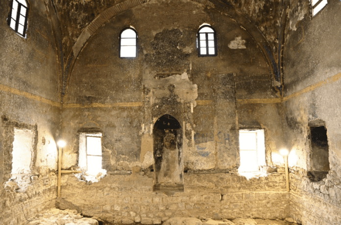 Σύμφωνα με τα δεδομένα της ανασκαφής και τη μελέτη των ευρημάτων, εκτιμάται ότι στο εσωτερικό του τεμένους αποκαλύφθηκε το μεσαίο κλίτος μιας τρίκλιτης βασιλικής. Κατόπιν αυτού αντικαθίσταται το προβλεπόμενο κεραμικό δάπεδο με γυάλινο, προκειμένου να παραμείνουν ορατά τα ευρήματα, αναδεικνύοντας τα παλαιότερα στρώματα της ιστορίας της περιοχής, πριν την οικοδόμηση του ίδιου του μνημείου, εμπλουτίζοντας την ιστορική και αρχαιολογική αξία του, ενισχύοντας παράλληλα τη μελλοντική του αξιοποίηση, ως χώρου πολιτιστικών εκδηλώσεων, όπως προβλέπεται από τη μελέτη αποκατάστασης και επανάχρησής του.