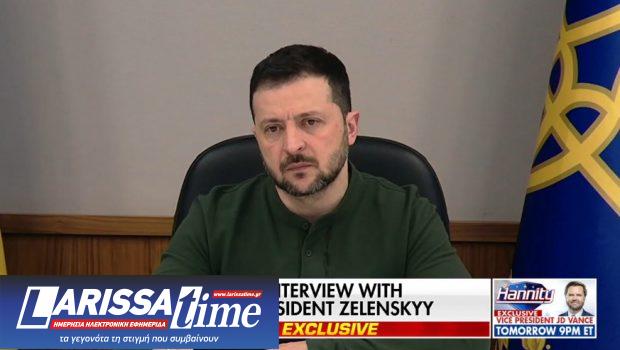 Σε συνέντευξή του στο Fox New ο ουκρανός πρόεδρος δήλωσε ότι η ρητορική του Ντόναλντ Τραμπ προς τον` Βλαντιμίρ Πούτιν σχετικά με τη διαπραγμάτευση μιας συμφωνίας για τον τερματισμό του πολέμου ή την αντιμετώπιση μεγαλύτερης οικονομικής πίεσης είναι «δίκαιη».