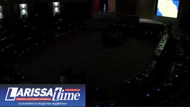 Καθώς τα φώτα έσβησαν, τα μέλη της αντιπολίτευσης φώναξαν ότι η διακοπή ήταν μια εύστοχη μεταφορά για την κατάσταση της χώρας.